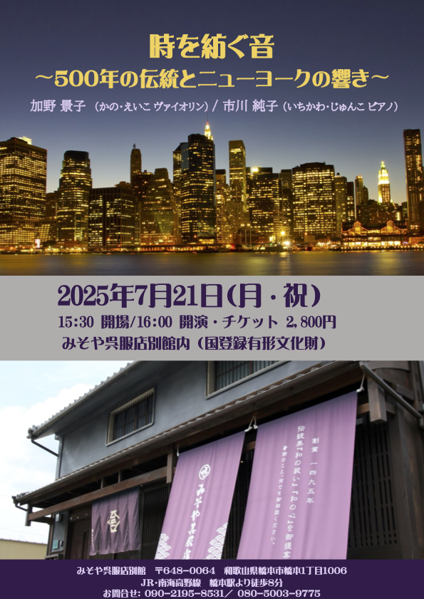 NYを拠点に活躍するヴァイオリニスト・加野景子氏による、県内初のマスタークラス